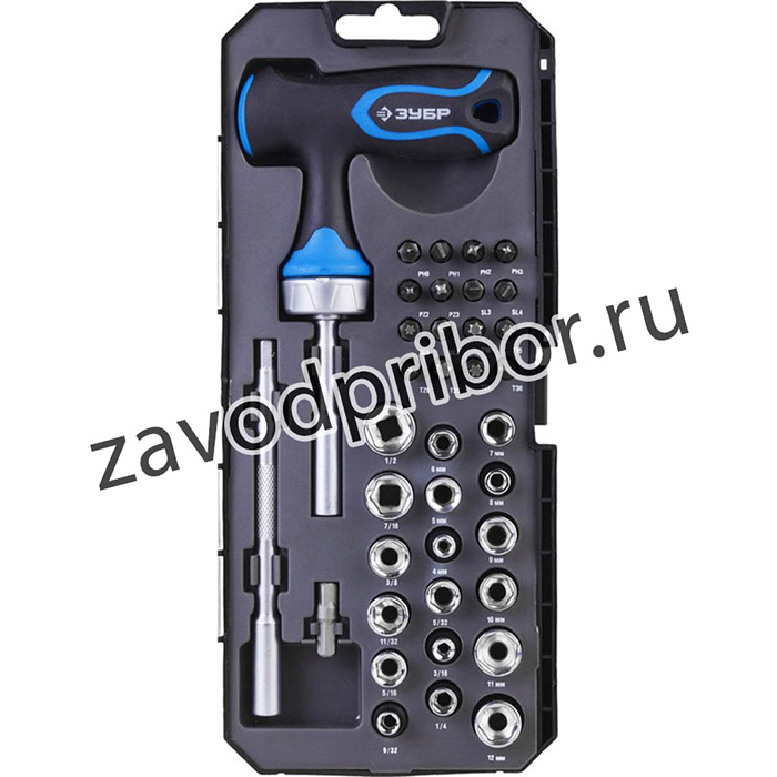 Набор ЗУБР ПРОФЕССИОНАЛ 25351-H38 реверсив с Т-образной рукоят.насадки.рукоят с отсеком для бит.