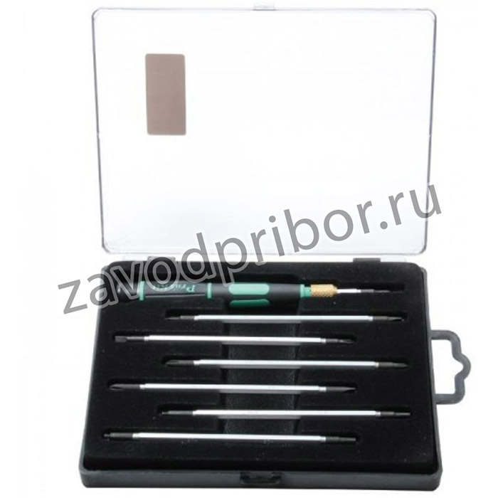Набор отверток ProsKit SD-081B 00275142 выполнен из прочной стали с добавлением хрома и молибдена. Изделие включает в себя удобную рукоятку и двусторонние стержни.Рукоятка не скользит за счет добавления нейлона. Пластиковый кейс оснащен прозрачной крышкой для удобства поиска.