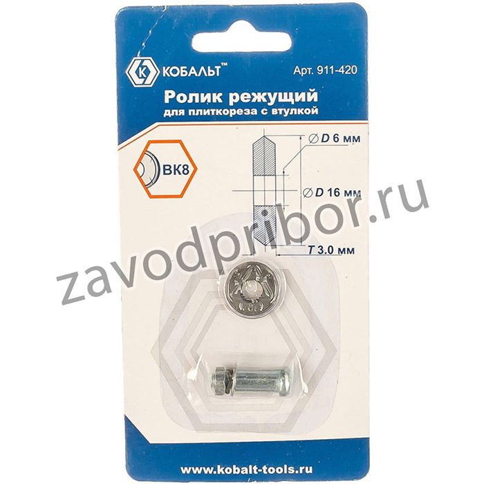 Ролик режущий для плиткореза КОБАЛЬТ 911-420 является сменным элементом для плиткорезов. Применяется при обработке плитки из кафеля, керамики, керамогранита и стекла. Ролик изготовлен из стали ВК8 и имеет долгий срок службы. Заявка: