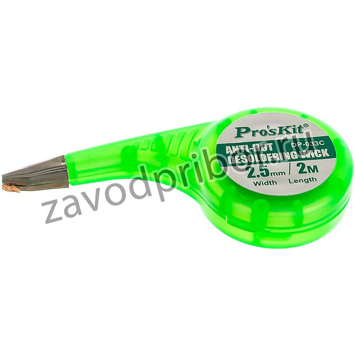 Лента-поглотитель олова ProsKit DP-033C 00356578 используется для удаления лишнего припоя. Изготовлена из бескислородной меди, покрыта специальным флюсом, который не требует очистки.Лента упакована в термостатический корпус, который защищает ее от перегрева. Также специальный дозатор позволяет контролировать расход ленты.