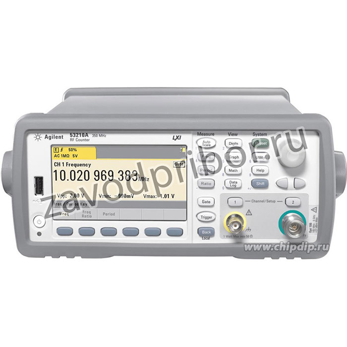 Одноканальный ВЧ частотомер Keysight 53210A с диапазоном частот 350 МГц обеспечивает быстрое и точное измерение частоты и имеет простой удобный пользовательский интерфейс. Для измерения частоты в диапазоне до 6 ГГц или до 15 ГГц может быть добавлен дополнительный СВЧ канал.