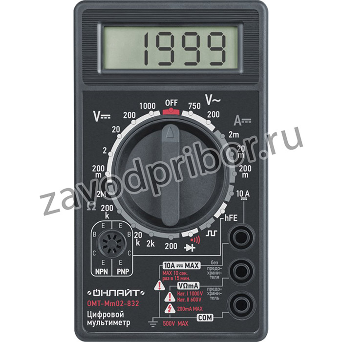 Мультиметр ОНЛАЙТ OMT-Mm02-832 82972 используются для проведения измерений электротехнических параметров сети и приборов при электромонтажных работах в быту и на производстве.Имеет надежный многопозиционный переключатель режимов работы и пределов измерений.