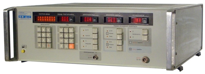 Предусмотрен режим ручного и внешнего программного управления параметрами, два режима работы: 1 режим — длит. фронта — 0,85нс; длит имп. — 0,1 -999,9 мкс; U -20В. 2 режим — длит. фронта — 100нс; длит имп. — 0,1 -9999 мкс; U -5В. период повт. в обоих режимах 0,01 — 99,99 мс; КОП, П-480×160×475, М-19кг.