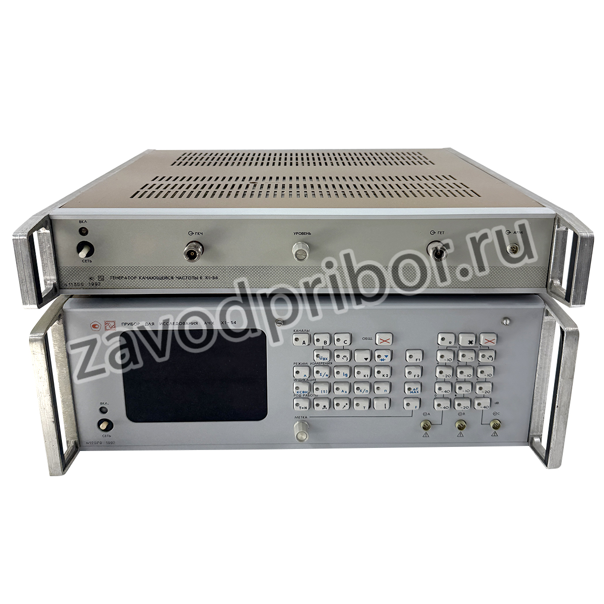Прибор для исследования амплитудно-частотных характеристик X1-54 предназначен для наблюдения и измерения амплитудно-частотных характеристик (АЧХ) радиоустройств с цифровым отсчетом измеряемых величин и воспроизведением АЧХ на экране осциллографического индикатора. Измерительный тракт прибора имеет коаксиальные разъемы канала 7/3,04 мм с волновым сопротивлением 50 Ом.
