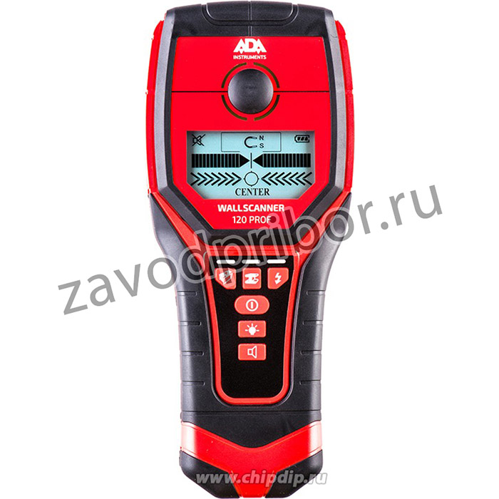Детектор металла, проводки и дерева ADA Wall Scanner 120 PROF детектор для обнаружения в стенах, полах и потолках металла цветного и черного, проводов под напряжением и деревянных конструкций посредством электрического сигнала.