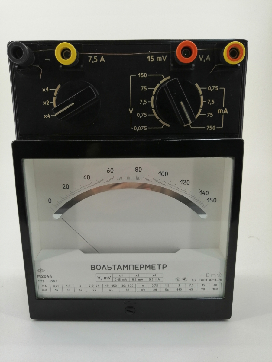 Вольтамперметр М2044 – для измерения напряжения и силы постоянного тока. Госреестр № 10077-85. Для измерения I, U в цепях постоянного тока. Кл.т. 0,2 0,75 мкА-30 А, 15 мВ-600 В. Масса: 3 кг. Габариты: 243 х 200 х 100 мм. Заменяет М2038.