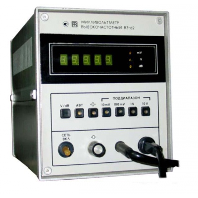 Милливольтметр В3-62 предназначен для измерения среднеквадратического значения высокочастотного напряжения синусоидальной формы. В В3-62 имеется цифровая индикация измеряемого напряжения в вольтах и децибелах, автоматический выбор поддиапазонов измерения.