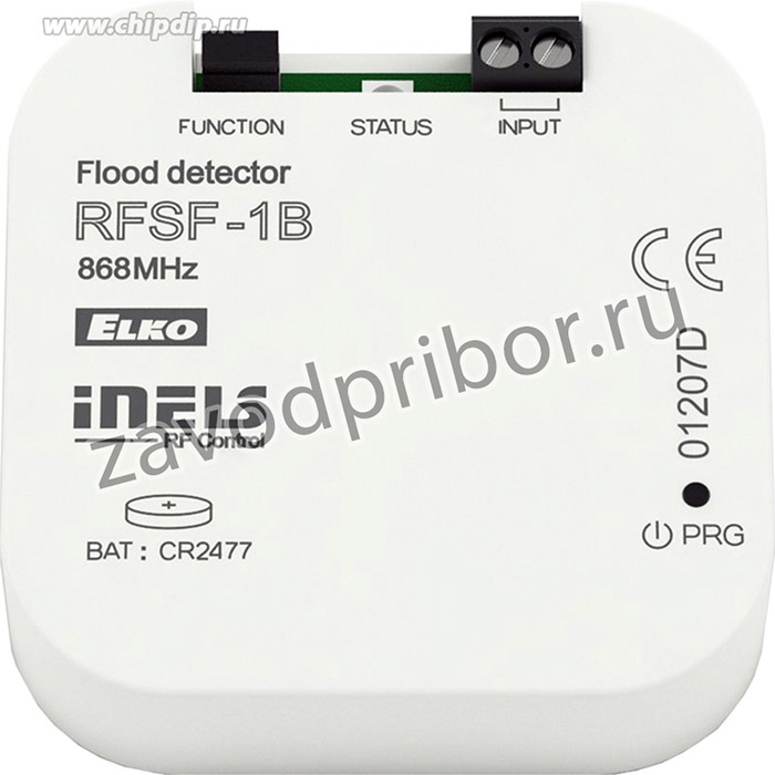 Беспроводной детектор затопления защищает помещения от затоплений (напр. ванные комнаты, подвалы, шахты и пр.). - Детектор, при обнаружении воды, посылает короткую команду на коммутирующий элемент, который включает насос, на GSM шлюз (RFGSM-220M) или закрывает клапан на трубе.