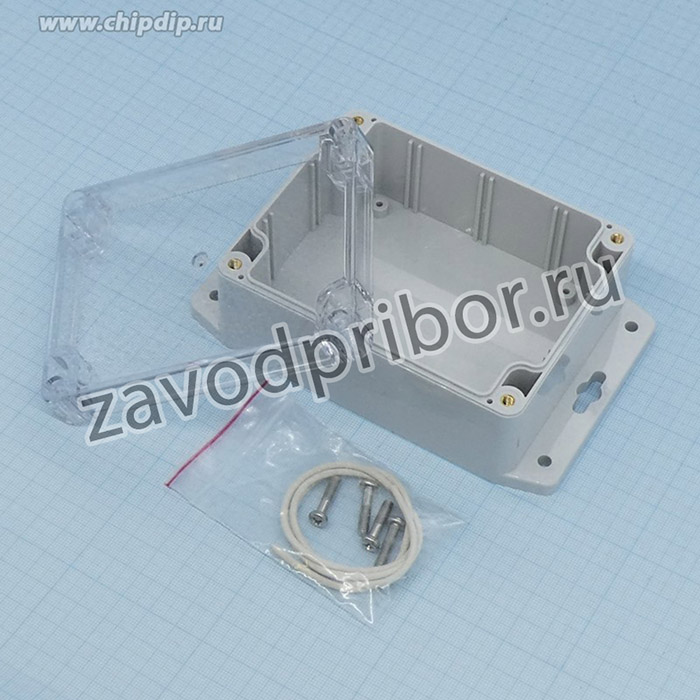 Герметичный корпус из поликарбоната с прозрачной крышкой и фланцем, IP65, светло-серый Заявка: