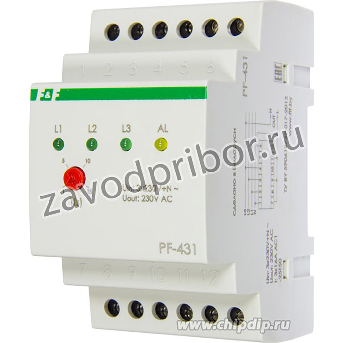 Переключатель фаз автоматический PF-431 предназначен для резервного питания однофазных потребителей от 3-х фазного ввода, выбора исправной фазы и питания нагрузки от нее.
