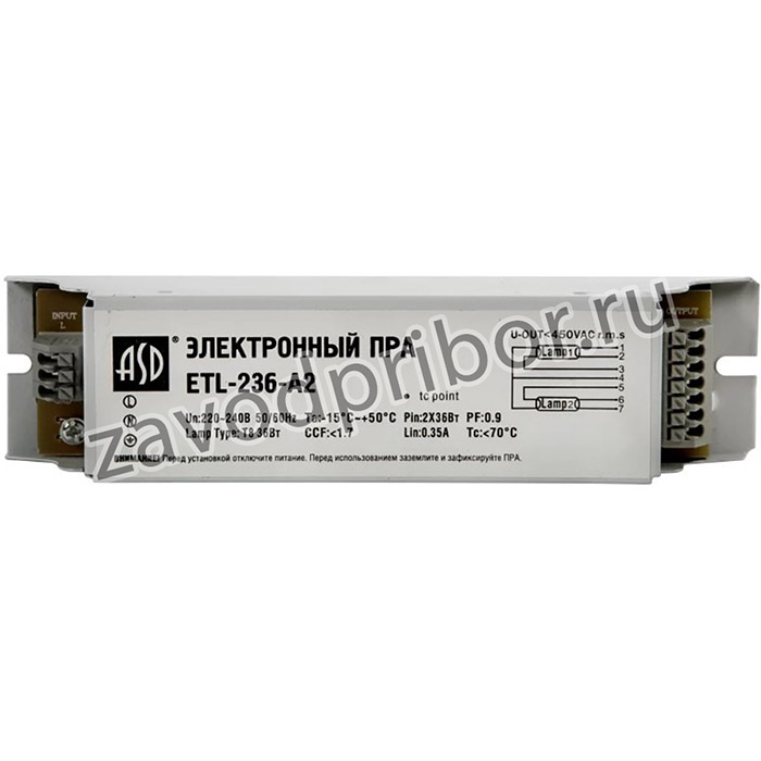 Дроссель электронный /ЭПРА/ EBH (ETL) 236 T8 2*36Вт с фильтром защиты 180*40*26