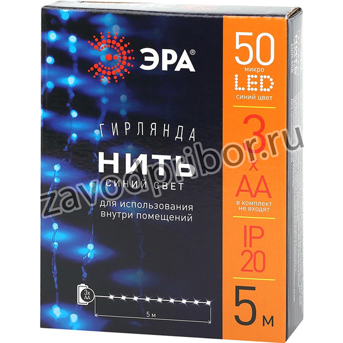 Новогодняя гирлянда ЭРА "Нить" (арт. Б0047962) с микросветодиодами сине-фиолетового оттенка. Использовать её можно вдали от розетки, так как подключение к электросети не требуется - гирлянда работает от 3 пальчиковых батареек. На полупрозрачном тонком проводе длиной 5 метров расположены 50 ярких миниатюрных лампочек-светодиодов. LED-технология является экономичным вариантом иллюминации - одного комплекта качественных элементов питания с лихвой хватит на все новогодние праздники. Эта современная гирлянда актуального дизайна - отличное решение для украшения дома, офиса, общественного пространства. Удобство в применении и отличное настроение вам обеспечены!