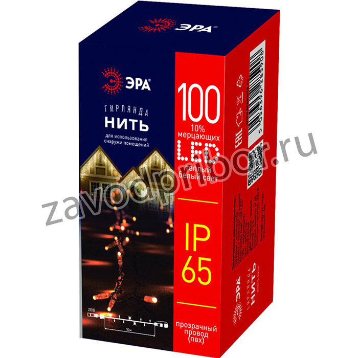 Гирлянда 100LED Нить 10 м, теплый свет, бел. мерц., прозрач. ПВХ, 220В, IP65