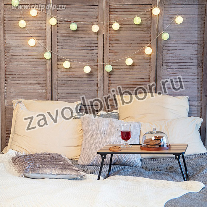 Тайские фонарики «Перламутр» — необычная светодиодная гирлянда длиной 3,5 метра, украшенная круглыми декоративными элементами в виде шариков, выполненных из хлопковой нити. Внутри каждого фонарика находится диод, излучающий теплый белый свет — всего в конструкции 20 диодов. Текстильный купол мягко рассеивает яркий поток, создавая уютное магическое свечение. Гирлянда, получающая питание от 3 батареек типа АА, поможет эффектно оформить карниз, гардину, спинку кровати, горшечное растение и любые другие интерьерные объекты, находящиеся вдали от розеток. Изделия на батарейках отлично подходят для украшения детских комнат благодаря безопасности использования. Заявка:
