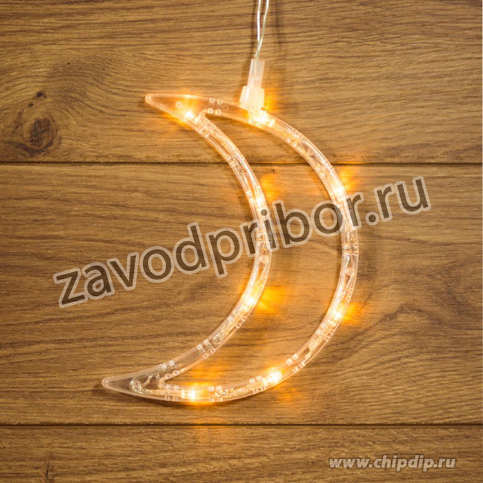 Светодиодная фигура «Месяц» — великолепный подарок родным и близким, который станет оригинальным украшением интерьера, как праздничного, так и повседневного. Изделие крепится на гладких поверхностях при помощи присоски, расположенной на батарейном модуле. Серебристый шнур, заключенный в изоляционную оболочку из ПВХ, отличается гибкостью, поэтому фигуру можно зафиксировать горизонтально и оставить свободно свисать. 8 диодов теплого белого свечения работают от 3 батареек типа ААА и экономно тратят заряд. Заявка: