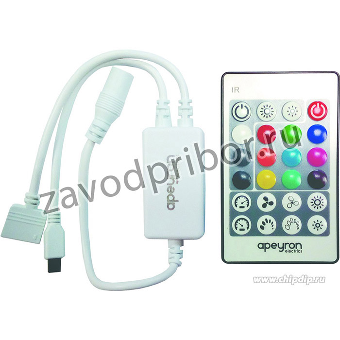 Контроллер CCT 04-29 предназначен для управления многоцветной светодиодной лентой RGBW. С помощью него можно регулировать цветовые оттенки, включать или выключать светодиодную ленту, выбирать различные динамические режимы свечения светодиодной ленты, регулировать яркость, а также подобрать комфортную скорость смены цветов в динамических режимах. Еще контроллер позволит отрегулировать свечение, создать атмосферу релакса и расслабления или выбрать фантастическую игру цвета, чтобы удивить близких и друзей. Одно из преимуществ данного изделия заключается в возможности работать как от напряжения 12 В, так и 24 В, а значит его можно использовать со светодиодными лентами с соответствующим напряжением. Важно отметить, что в зависимости от того с каким напряжением предстоит работать устройству, будет отличаться и максимальная мощность нагрузки, которую можно подключить к нему. Так, при напряжении 12 В максимальная нагрузка будет равна 72 Вт, а при напряжении 24 В уже 144 Вт. Это значит, что к данному изделию вы можете подключить в два раза больше светодиодной ленты 24 В. Контроллер укомплектован дистанционным пультом управления, передающим сигнал по инфракрасному каналу. Управление осуществляется с помощью кнопок, расположенных на лицевой стороне пульта, который работает от 1-й батарейки CR2025. Накладной корпус контроллера, выполненный из пластика, имеет размер 50х28х13 мм. Степень защиты от пыли и влаги соответствует стандарту IP33, что подразумевает установку устройства в сухом, проветриваемом помещении.