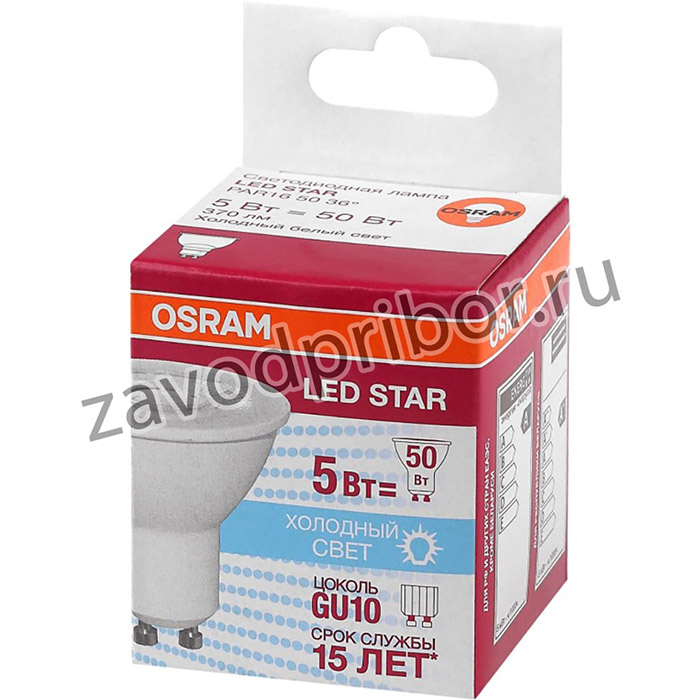 Низковольтная светодиодная рефлекторная лампа Osram, излучает естественный белый свет, со штырьковым цоколем типа Retrofit GU10, мощность 5 Вт. Компактные размеры, небольшой вес. традиционным лампам накаливания. Безртутная лампа. Не требует специальной утилизации. Код модели LSPAR165036 5W/840.Преимущества изделия:- Срок службы 15000 h - Очень низкое потребление энергии- Эффективное генерирование белого света- Моментальная подача 100 % светового потока, нет задержки на розжиг- Идеально подходит для установки в экономичные точечные светильникиХарактеристики изделий:- Коэффициент цветопередачи Ra _ 80- Световой поток 370 Лм- Цветовая температура 4000 КОсновные габариты (мм) см. фото № 4: - Длина 54 мм (L)- Диаметр 50 мм (D)- Вес продукта 27 г/шт.Области применения:- Магазины, демонстрационные короба и витрины магазинов гостиничный бизнес, интерьеры жилых помещений- Музеи, художественные галереи- Гостиничный бизнес- Интерьеры жилых помещений, направленное освещение для создания акцентов и таких чувствительных к нагреву объектов, как продукты питания, растения - В качестве светильника направленного света для обозначения проходов, дверей, лестниц- Наружное применение только в соответствующих светильникахЛицензиатом торговой марки Osram в общем освещении является компания Ledvance.Внешний вид и/или характеристики товара могут быть изменены производителем в соответствии с производственным процессом. Заявка: