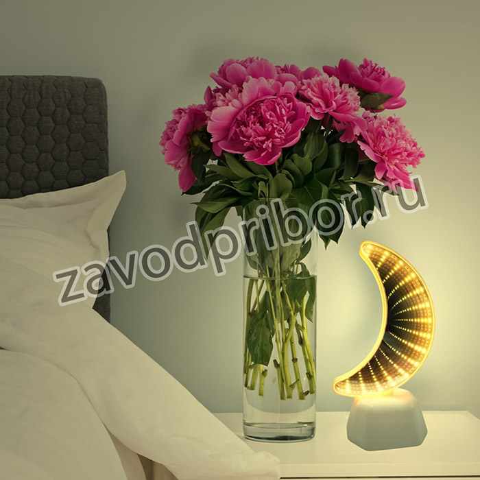 Светодиодный ночник с эффектом бесконечности «Месяц». Креативный и многофункциональный подарок: может использоваться в качестве практичного ночника, оригинального декоративного светильника и даже зеркала. Удивительный эффект бесконечного светящегося туннеля завораживает и привлекает внимание. Кажется, будто огоньков десятки или даже сотни – такая иллюзия создаётся за счёт зеркального отражения. Цвет свечения: жёлтый. Размер: 100 х 70 х 190 мм. Изделие крепится на устойчивое нескользящее основание, внутри которого размещены элементы питания – 3 батарейки типа АА (в комплект не входят). Светодиоды абсолютно пожаробезопасны, экономичны и имеют длительный срок службы – не менее 50 000 часов. Двусторонняя зеркальная поверхность позволяет поворачивать прибор под любым углом. Корпус выполнен из АБС-пластика. Этот материал не боится воздействия ультрафиолета, долговечен, ударопрочен и не токсичен, что немаловажно при эксплуатации в детской комнате. Преимущества