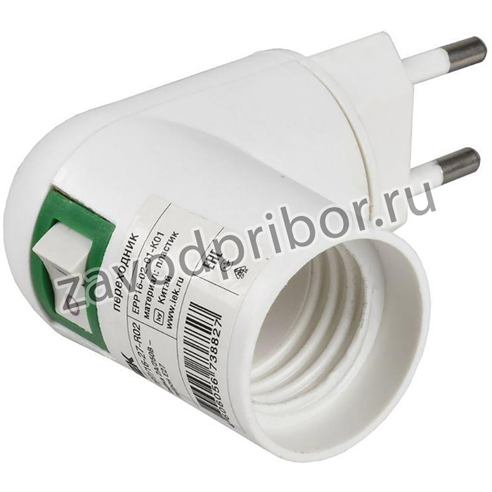 Переходник ПР7/16-27-R02 вилка 220В-патрон Е27 пластик бел. IEK EPP16-02-01-K01