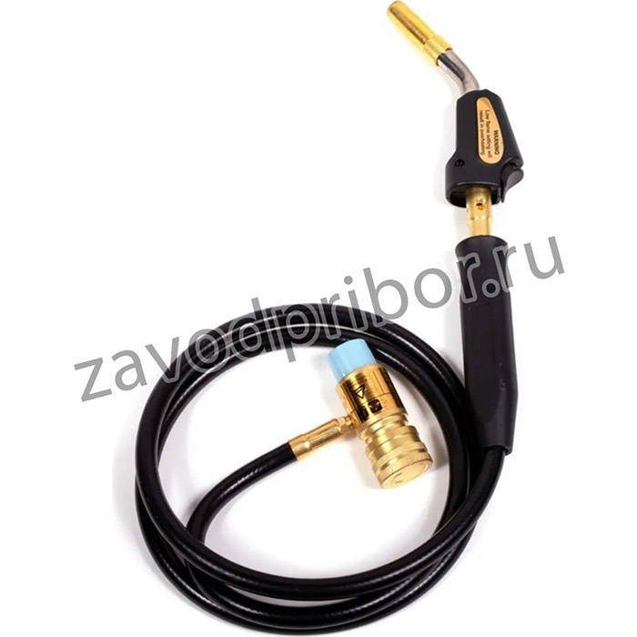 Горелка производит регулировку пламени для удобства работы. Изделие выполнено из качественного металла и оснащено пластиковой рукояткой. Угол вращения сопла составляет 360 градусов.
