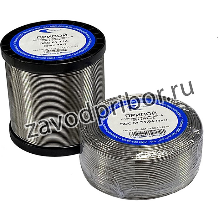 Припой ПОС61 (Sn61Pb39) с канифолью (флюсом) - оловянно-свинцовый легкоплавкий припой трубчатого типа с сосновой канифолью. Используется в качестве присадочного материала для закрепления методом пайки нескольких металлических элементов из разных металлов (латунь, сплав с цинковым покрытием, медь и т.п.) в электро и радиоаппаратуре, печатных схемах, точных приборах с высоко герметичными швами, где недопустим перегрев. Припой ПОС 61 с канифолью производится в виде трубки различных диаметров и массой.