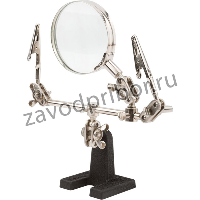 Зажим для пайки с лупой. Имеет устойчивую литую станину и зажимы, фиксирующие деталь при работе. 62 мм лупа с 3-х кратным увеличением позволяет работать с мелкими деталями и проводами. Упаковка: блистер.