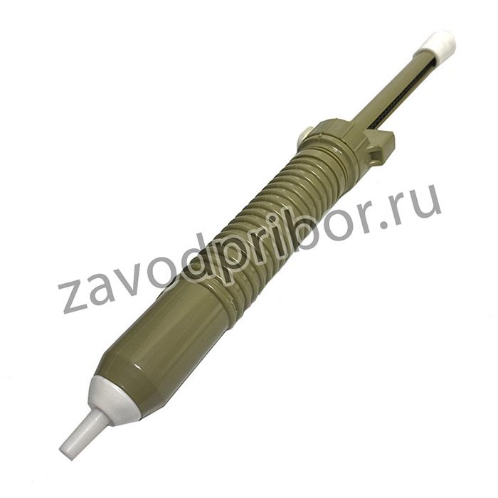 Оловоотсос паяльный пластмассовый изготовлен из термостойкого пластика, механизм - из нержавеющей стали.