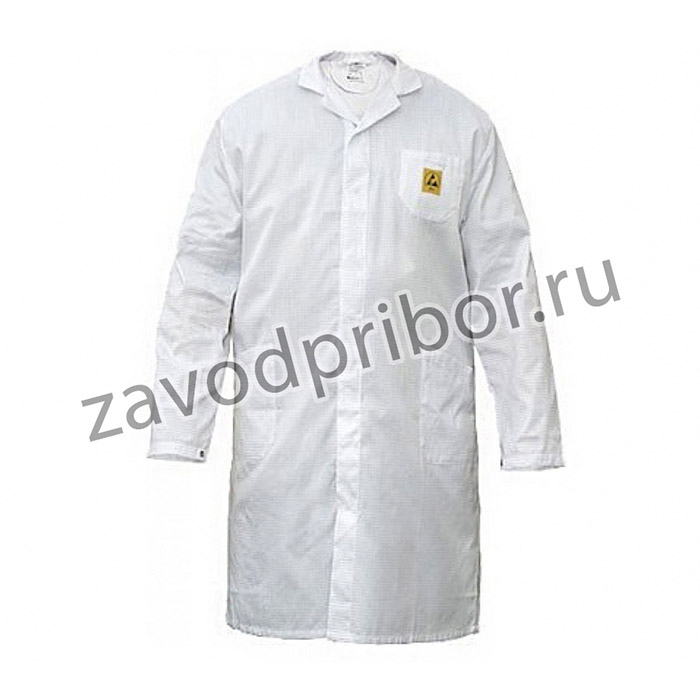 Халат антистатический для чистых помещений ХА-03M ESD. Халат мужской прямой с отложным воротником. Полочки с накладными боковыми и нагрудным карманами.