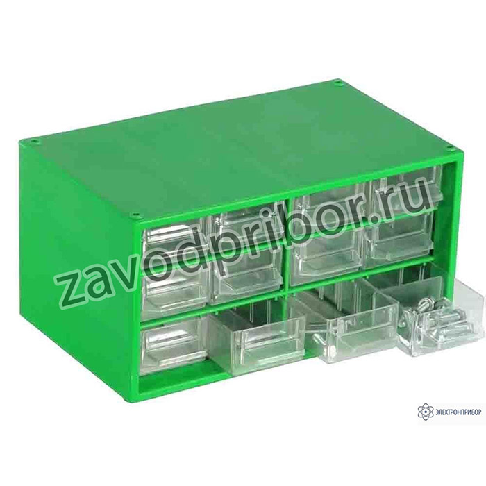 - Пластиковый бокс на 12 отделений с перегородкой для хранения радиодеталей и крепежа.