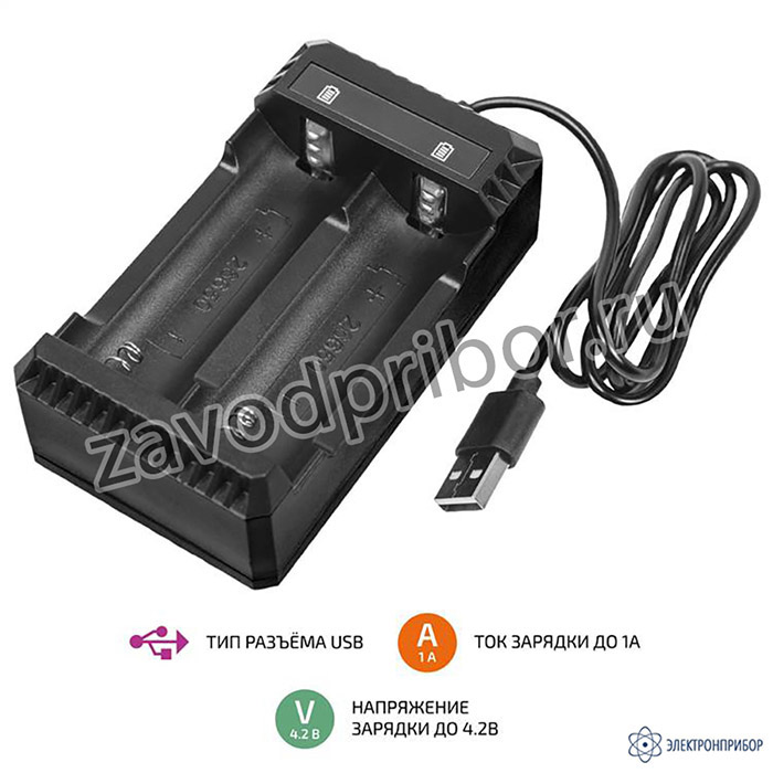 Зарядное устройство МЕГЕОН 77901K7 предназначено для осуществления заряда аккумуляторных батарей типов 18650, 22650 и 26650.