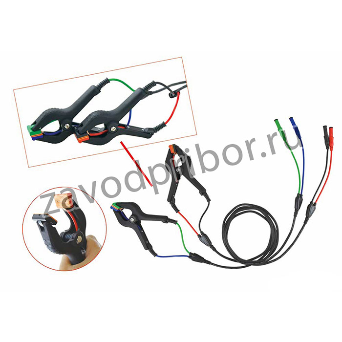 Комплект измерительных проводов для 4-х проводного измерения сопротивления (4 «банана» различного цвета на 2 мощных клещевых зажима типа «крокодил»/ Kelvin).
