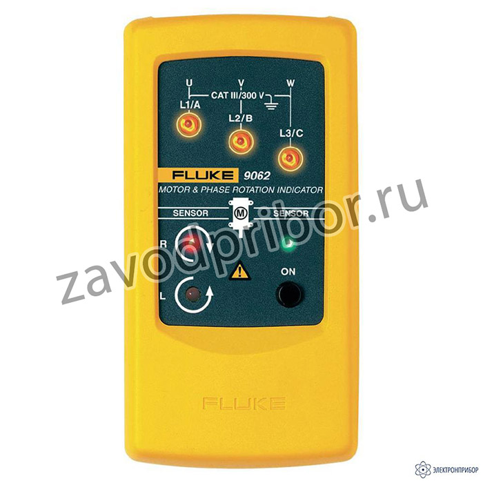 Уникальный прибор Motor & Phase Rotation Indicator Fluke 9062 обеспечивает индикацию вращающегося поля и вращения электродвигателя, обладает преимуществом бесконтактного измерения. Будучи специально предназначенным для коммерческого и промышленного применения, прибор Fluke 9062 обеспечивает быструю индикацию чередования 3-х фаз с помощью входящих в комплект измерительных проводов, а также может использоваться для определения направления вращения синхронных и асинхронных 3-фазных двигателей. Бесконтактное измерение идеально подходит для электродвигателей со скрытым валом. Входящие в комплект щупы оснащены зажимами различных размеров, обеспечивающими безопасное подсоединение, в том числе и к промышленным штепсельным разъемам.