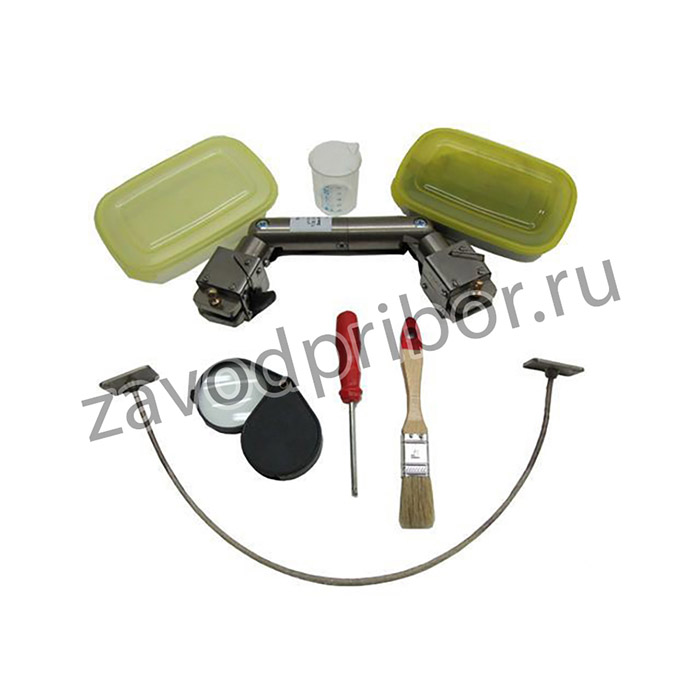 Комплект дефектоскопа МД-6К содержит: контрольный образец с дефектограммой, лупу, мерку для измерения количества порошка для суспензии, тросовую перемычку, магнитопровод шарирнирный и другие приспособления.