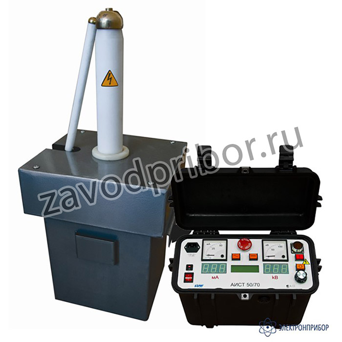 Высоковольтная испытательная установка аппарат испытания диэлектриков АИСТ 50/70 предназначена для испытания электрооборудования, электрической прочности изоляции силовых кабельных линий и твердых диэлектриков высоким напряжением переменного тока промышленной частоты до 50 кВ и постоянного тока до 70 кВ.