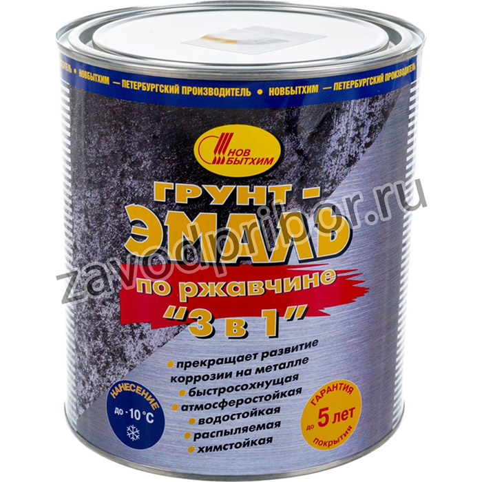 Грунт-эмаль по ржавчине 3в1 НОВБЫТХИМ желтая 3 л 1/6 16436 предназначена при внутренних и наружных работах для окрашивания металлических конструкций: решетки, ограды, гаражи и ржавые детали в автомобиле.Продукт имеет незначительный запах, равномерно окрашивает, быстро сохнет и останавливает процесс окисления металла.