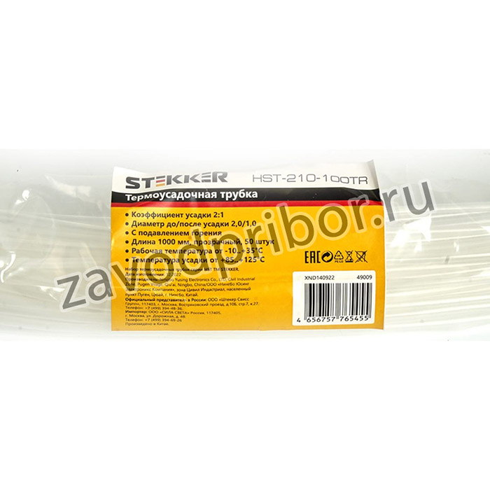 —Набор термоусадочных трубок HST-210-100TR, длина 100 см., коэф. усадки 2:1, (50шт в упаковке), 49009