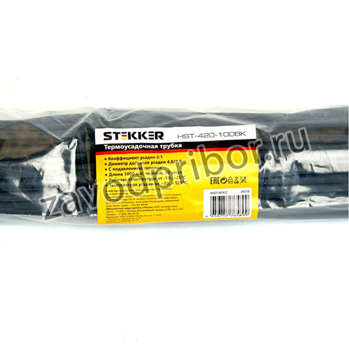 —Набор термоусадочных трубок HST-420-100BK 4,0/2,0, длина 100 см., коэф. усадки 2:1, черный 39729