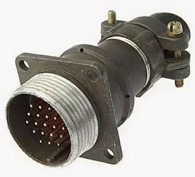 2РМ24БПН19Ш1В1 вилка блочная (приборная) с прямым патрубком, гайкой для неэкранированного кабеля и контактами покрытыми серебромСоединитель 2РМ24БПН19Ш1В1 цилиндрический низкочастотный негерметичный объемного монтажа с резьбовой фиксацией сочлененного положения.Предназначен для работы в электрических цепях постоянного и переменного токов частотой до 3 МГц при напряжении до 700 В.Структура условного обозначения:2РМ24БПН19Ш1В12РМ - тип соединителя;24 - условный размер корпуса;Б - вид корпуса: К - кабельный, Б - блочный (приборный);П - вид патрубка: П - прямой, У - угловой;Н - вид гайки патрубка: Э - для экранированного кабеля, Н - для неэкранированного кабеля;19 - количество контактов;Ш - часть соединителя: Ш - вилка; Г - розетка;1 - обозначение сочетания контактов;В - покрытие контактов: А - золото, В - серебро;1 - теплостойкость 1 - 100°С; 2 - 200°С;Л - левая розетка (только для проходных вилок).