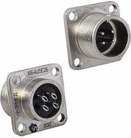 2РМГД18Б4Ш5Е2Б вилка приборнаяСоединитель 2РМГД18Б4Ш5Е2Б - вилка приборная низкочастотная цилиндрическая герметичная с резьбовой фиксацией сочлененного положения.Предназначен для работы в электрических цепях постоянного, переменного (частотой до 3 МГц) и импульсного токов.Используется в узлах и блоках радиоэлектронной аппаратуры общего и специального назначения.Расшифровка условного обозначения:2РМГД18Б4Ш5Е2Б2РМГД - тип соединителя;18 - условный размер корпуса;Б - вид корпуса: Б - блочный (приборный);П - вид патрубка: П - прямой;Э - вид гайки патрубка: Э - для экранированного кабеля, Н - для неэкранированного кабеля;4 - количество контактов;Ш - часть соединителя: Ш - вилка;5 - обозначение сочетания контактов;Е - покрытие контактов - химникель;2 - теплостойкость 1 - 100°С; 2 - 200°С;Б - корпус блочный (приборный) без левой резьбы.
