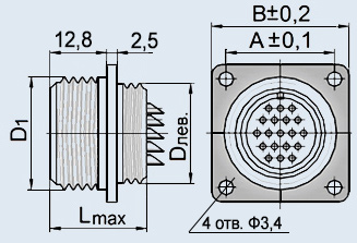 2РМТ14Б4Г1В1В розетка приборная (блочная) без патрубка с серебряным покрытием контактов