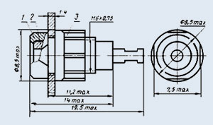 Гнездо Г1.6 однополюсное под штепсель с диаметром рабочих поверхностей контактов 1,6 мм.