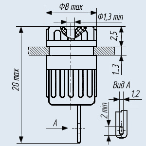 Гнездо ГИ1.2 приборное однополюсное под штепсель с диаметром рабочих поверхностей контактов 1,2 мм.