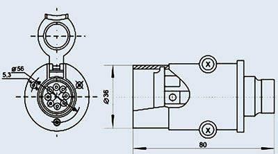 Предназначен для соединения электрических цепей постоянного или переменного тока напряжением 12 и 24 В и силой тока 40 А автомобилей и тракторов с электрическими цепями буксируемых ими