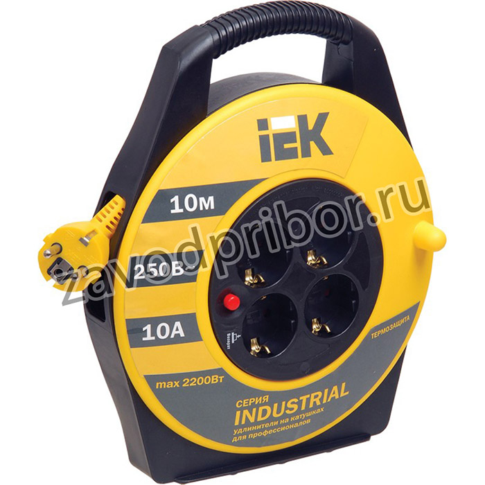 Удлинитель 10 метров УК10 на катушке с термозащитой 4 гнезда/розетки 2Р+РЕ, ПВС 3х1мм2, WKP14-10-04-10 IEK