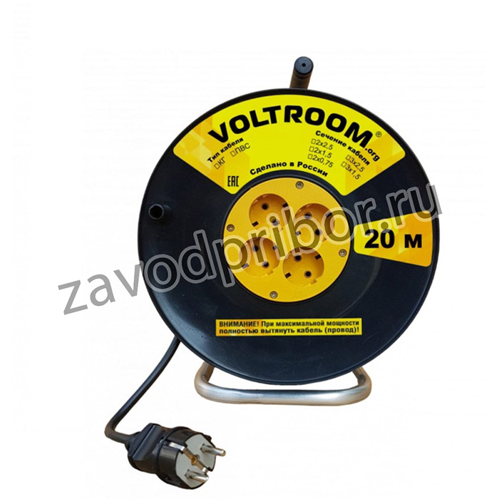Удлинитель на пластиковой катушке Voltroom ПВС 2*0.75-20 10А, 220В предназначен для работы по дому и даче. Удлинитель прекрасно подходит для работы с электроинструментом, осветительными приборами, насосной техникой, и многим другим электро оборудованием.Удобен в транспортировке, хранении, и работе.Удлинитель оснащен четырьмя розетками на пластиковой катушке с проводом ПВС длинной 20 метров и сечением 2х0.75